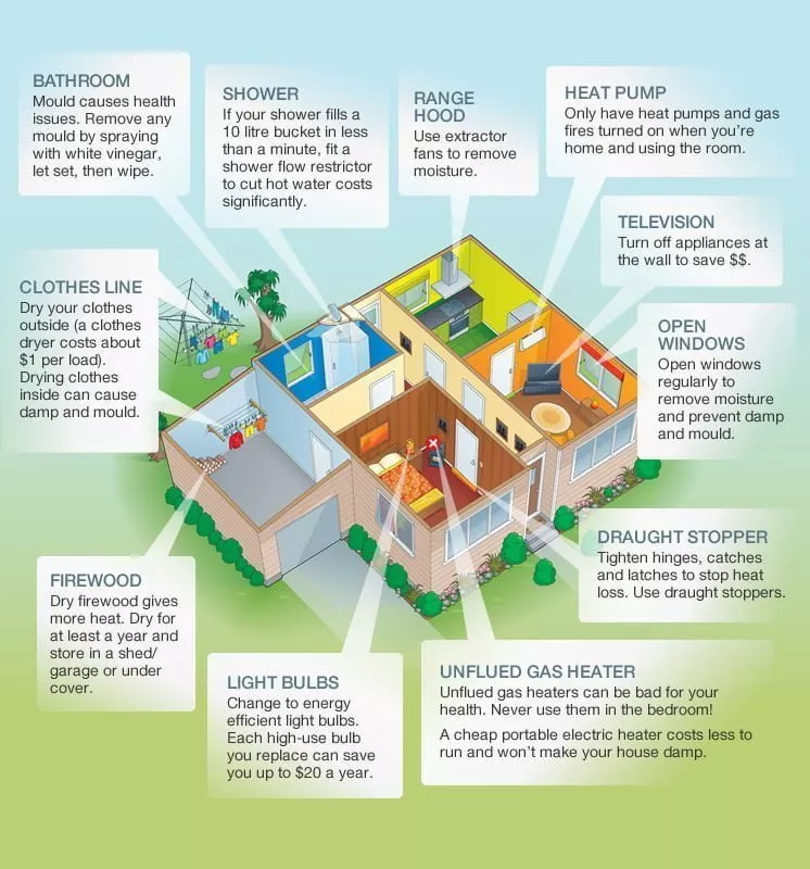 - Avoid unflued gas heaters -which release toxic fumes and make your house damp. Cheap portable electric heaters are safer and cost less to run.