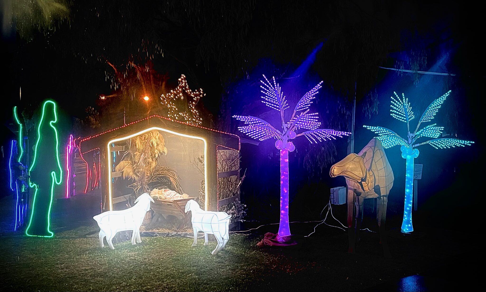 A free drive-through Christmas spectacle at Northcross Church with glowing displays, live festive characters and a cosy café offering food, drinks and entertainment afterwards.